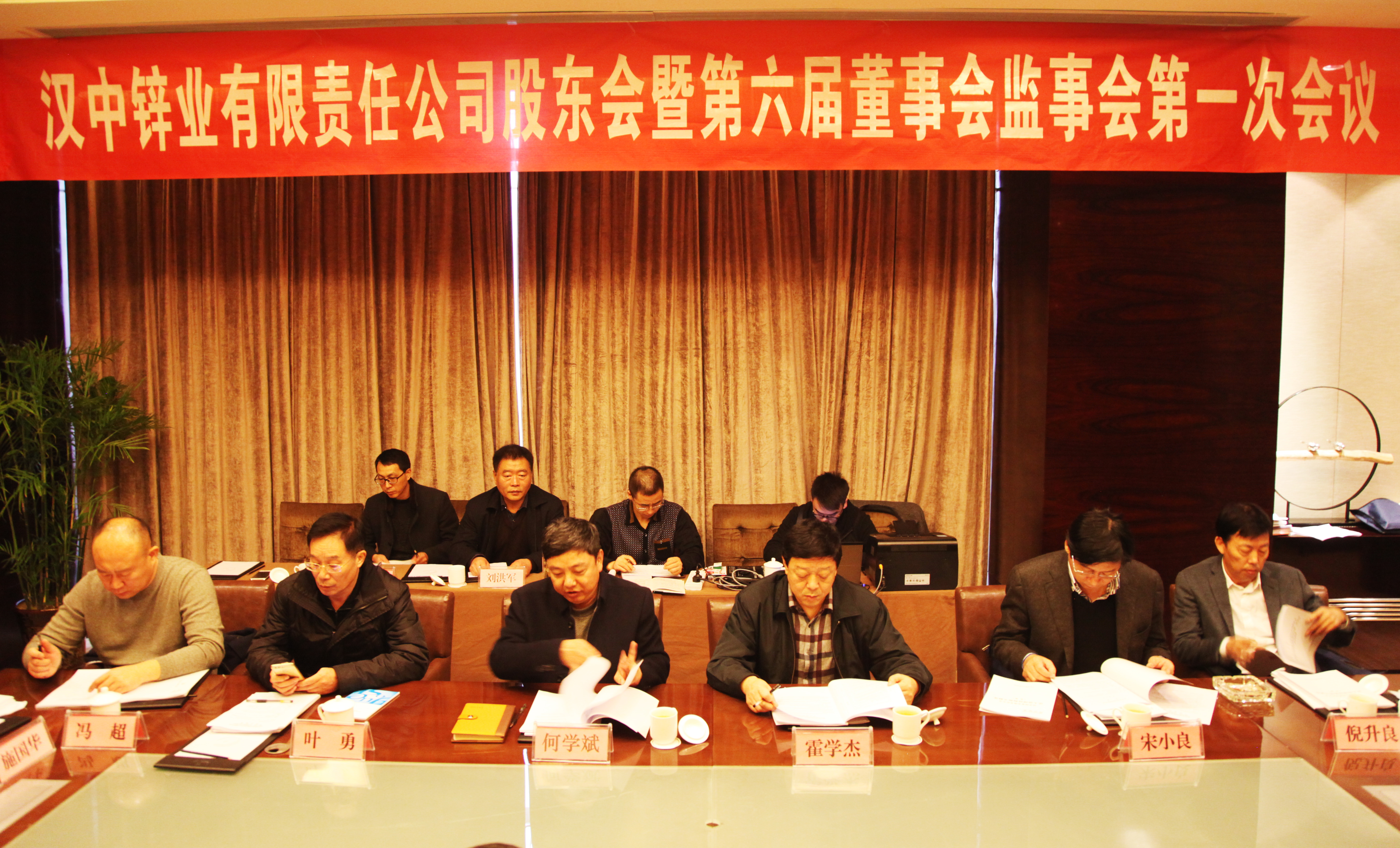 11月30日,公司股東會暨六屆一次董事會監事會在漢中召開。公司董事長、黨委書記何學斌主持會議。陜西有色金屬集團公司董事、漢中鋅業公司監事會主席霍學杰,公司股東代表、董事、監事、董事會秘書等20余人參加會議,共同為企業問診把脈,共商企業發展大計。