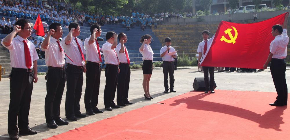 合唱比賽開始前,公司黨委舉行了新黨員宣誓儀式,黨委組織部長楊新宏領(lǐng)誓。在鮮紅的黨旗下,7名新發(fā)展黨員高舉右拳,以拳拳之心莊嚴(yán)宣誓,在鮮紅的黨旗下許下為共產(chǎn)主義事業(yè)奮斗終身的承諾。